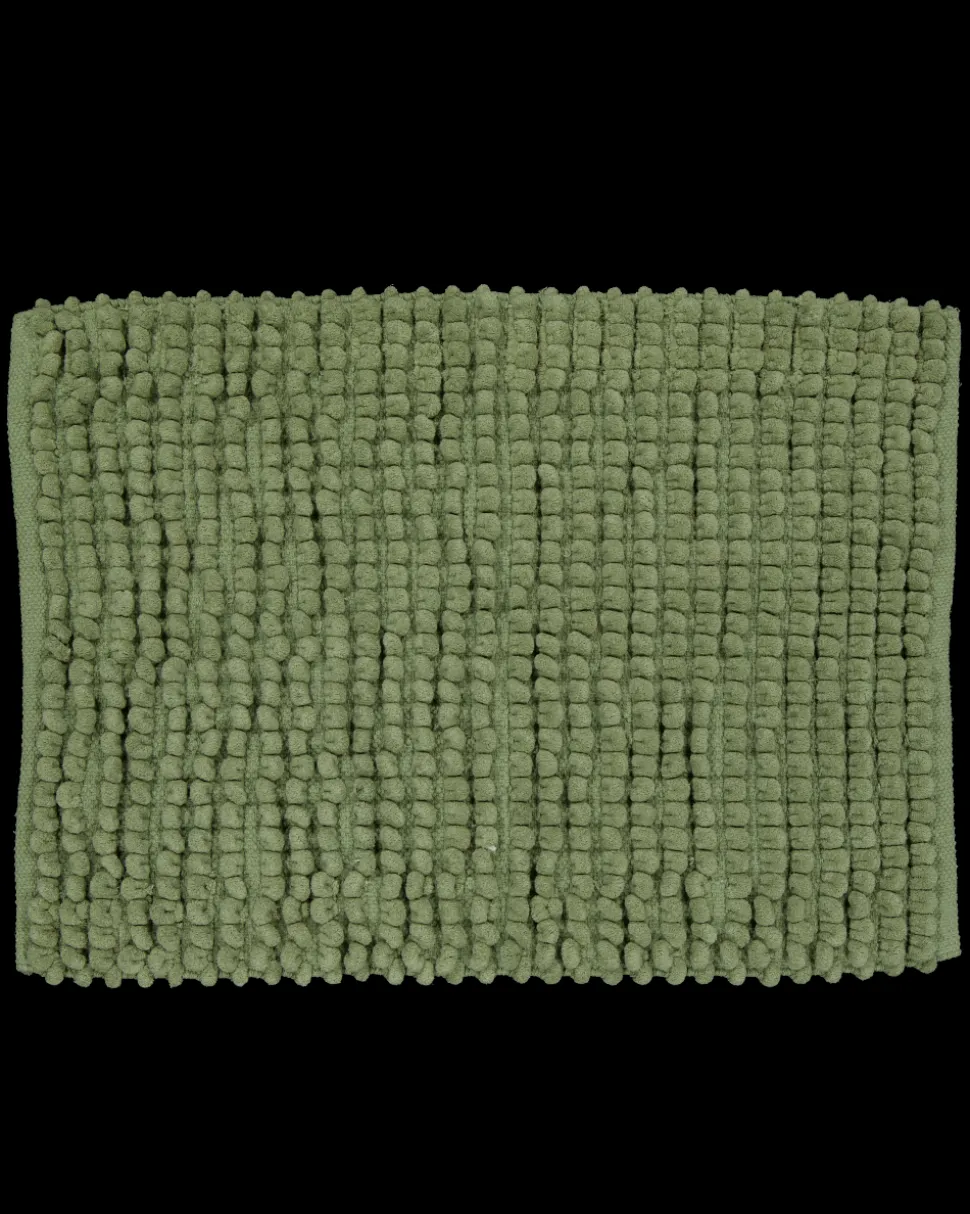 Deze badmat in de kleur groen is gemaakt van 100% katoen en heeft een voering van 100% polyester. De materialen zorgen voor een zachte ondergrond en goede vochtopname. Met deze badmat houd je je vloer droog en voorkom je uitglijden na het douchen.
