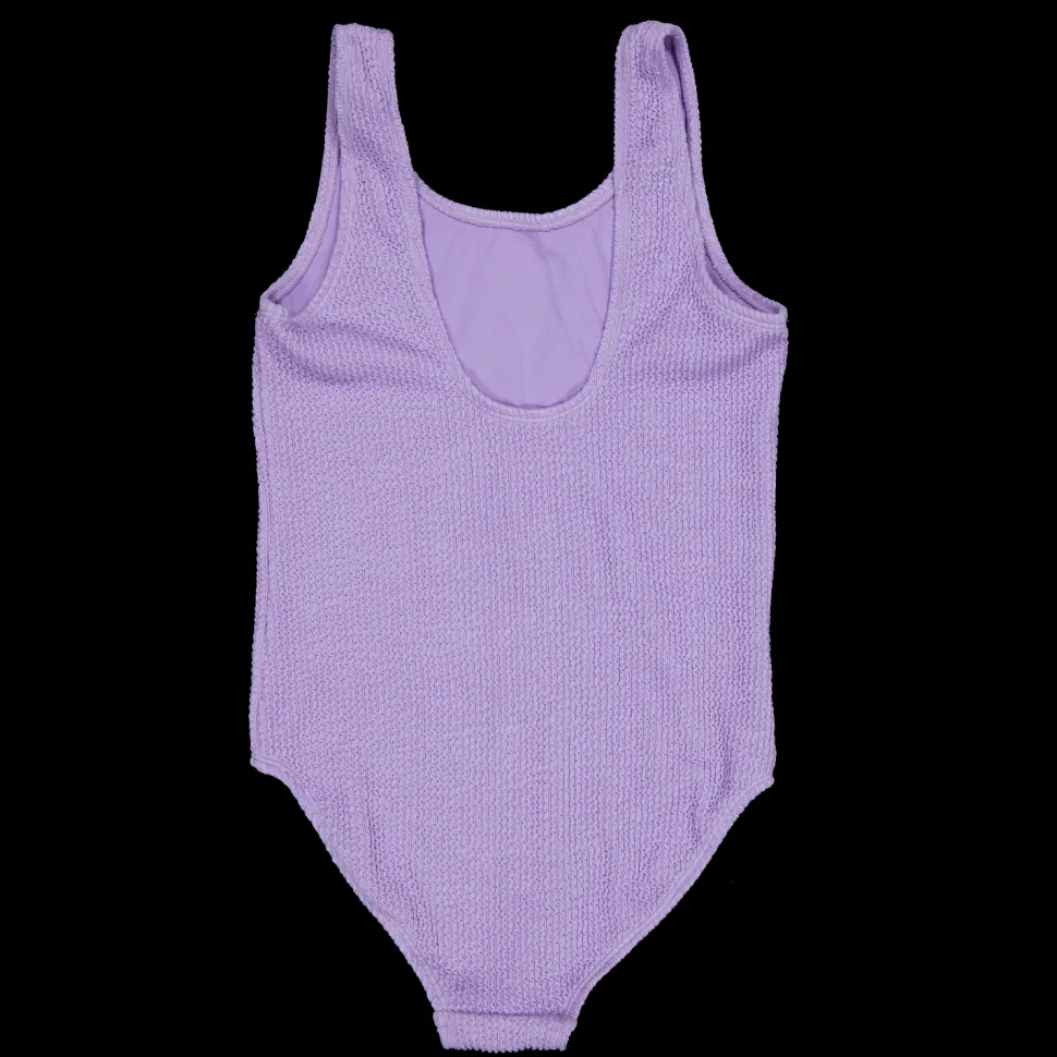 Deze paarse zwempak is speciaal voor tienermeisjes. Het is gemaakt van een comfortabele breisel van 95% polyester en 5% elastaan. Dit materiaal zorgt voor een fijne pasvorm en maakt het pak geschikt voor verschillende activiteiten rond het water. Het heeft brede schouderbanden voor extra steun.
