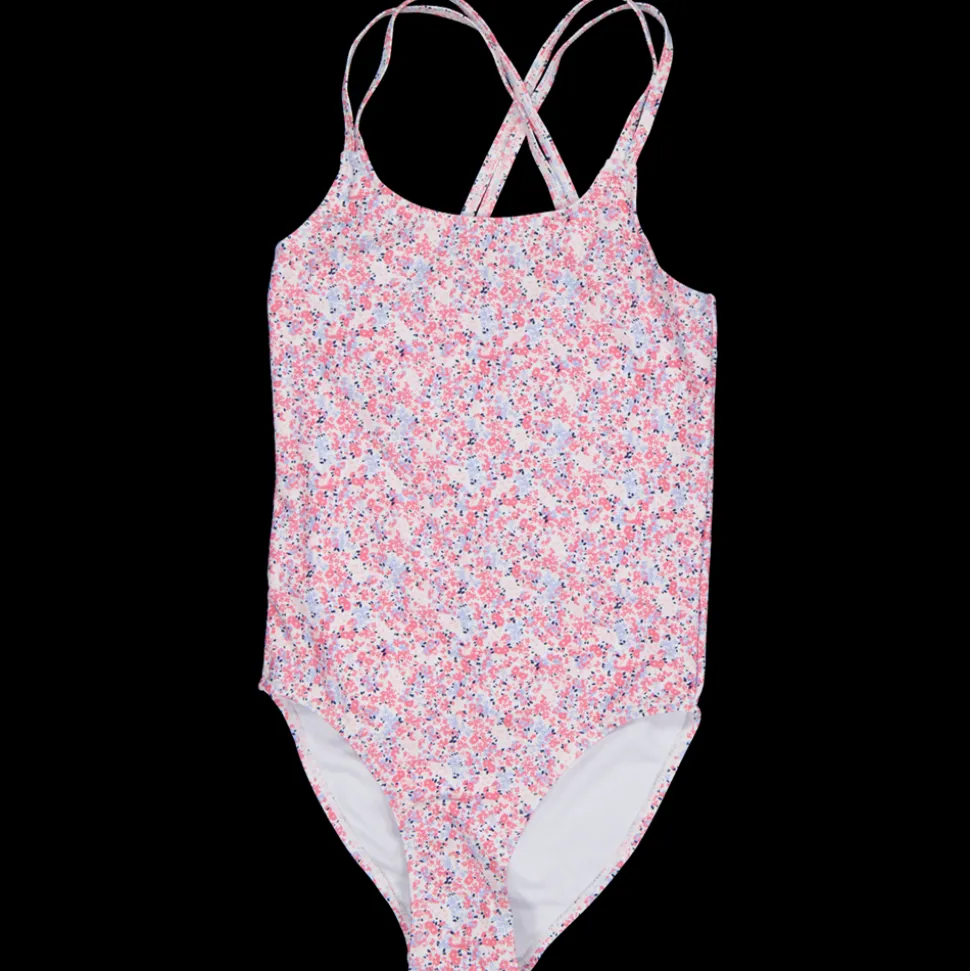 Deze badpak voor meisjes heeft een frisse, kleurrijke print. Het is gemaakt van 82% polyamide en 18% elastaan, wat zorgt voor een comfortabele pasvorm en rekbaarheid. De spaghettibandjes zijn praktisch en geven een makkelijke bewegingsvrijheid. Ideaal voor een dag aan het water.
