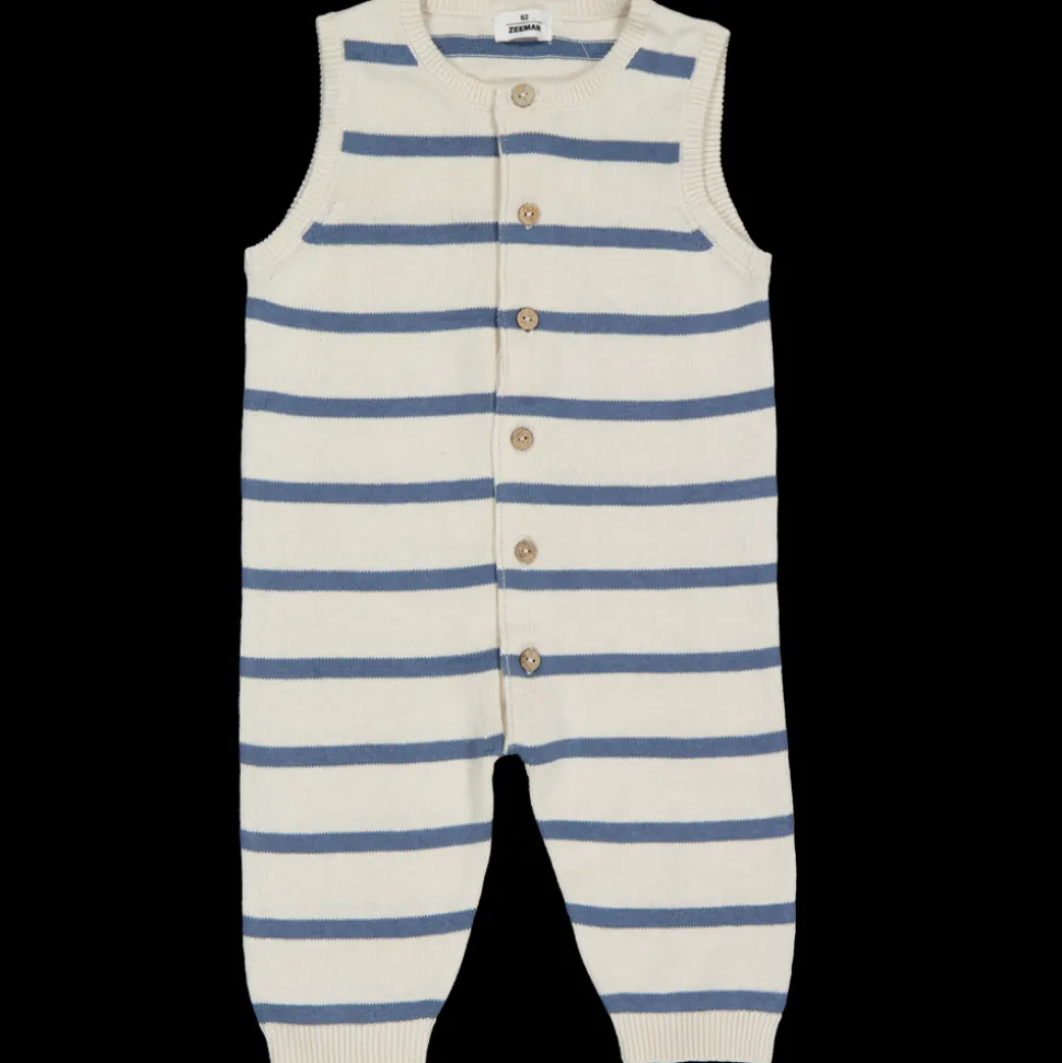 Deze romper is gemaakt van 100% katoen en zorgt voor comfort voor je baby. Het heeft een praktische knoopsluiting aan de voorzijde, waardoor het gemakkelijk aan en uit te trekken is. De witte basis met blauwe strepen geeft een frisse uitstraling. Geschikt voor jongens en meisjes.