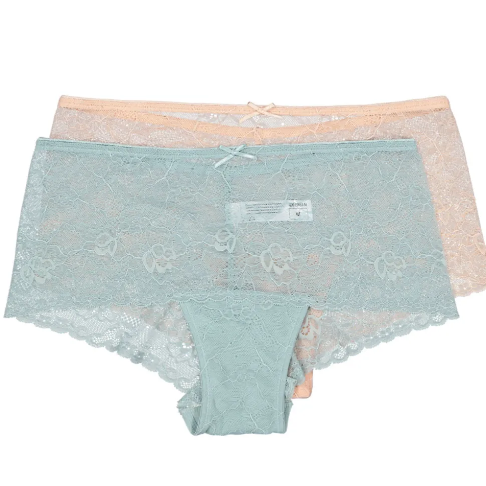Een Brazilian slip lijkt op een gewone slip, maar heeft minder dekking aan de achterkant doordat ze hoger zijn uitgesneden. Deze set bestaat uit 2 dames brazilians met een smalle, elastische tailleband. Die zorgt er niet alleen voor dat ze goed aansluiten, maar ook dat ze de hele dag lekker zitten. Het kant zorgt voor een elegante uitstraling. Zo zitten ze fijn en zien ze er mooi uit.