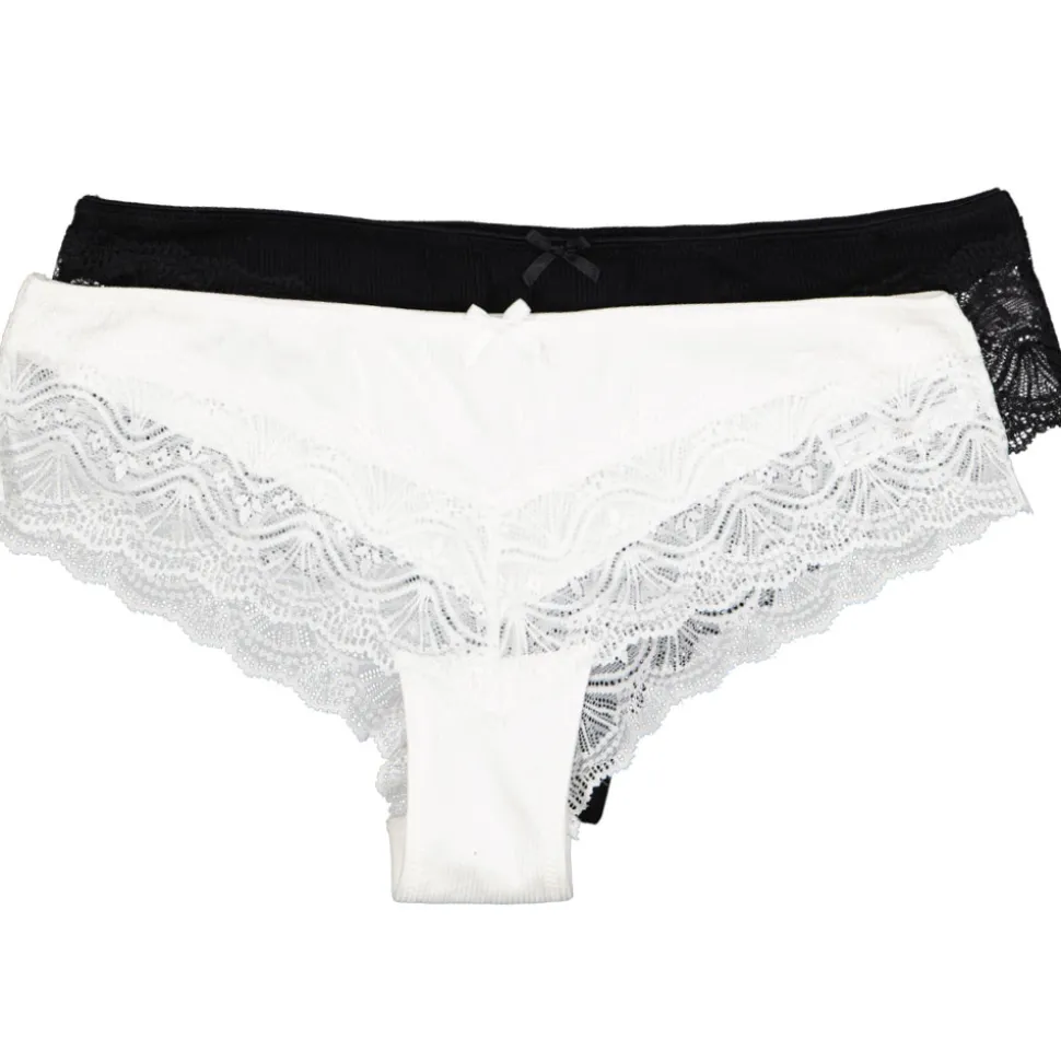 Een Brazilian slip lijkt op een gewone slip, maar heeft minder dekking aan de achterkant doordat ze hoger zijn uitgesneden. Deze set bestaat uit 2 dames brazilians met een smalle, elastische tailleband. Die zorgt ervoor dat ze goed aansluiten en de hele dag lekker zitten. Doordat deze slips zijn versierd met met kant, hebben ze een elegante uitstraling. Zo zitten ze fijn en zien ze er mooi uit.