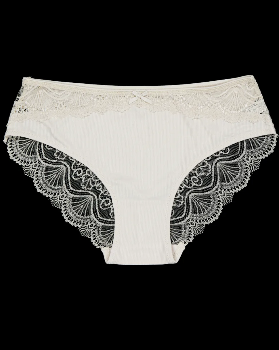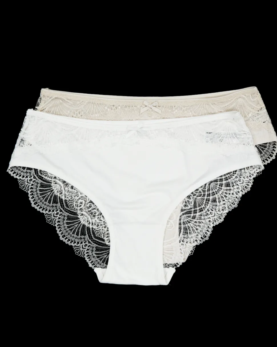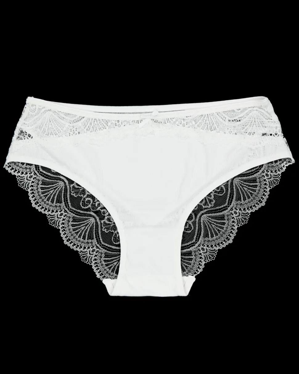 Deze brazilian is gemaakt van ribstof met een samenstelling van 95% katoen en 5% elastaan. De kleur is wit en het model is bedoeld voor vrouwen. Het fijne materiaal zorgt voor een comfortabele pasvorm en het kant geeft een subtiele afwerking. Je krijgt twee stuks.