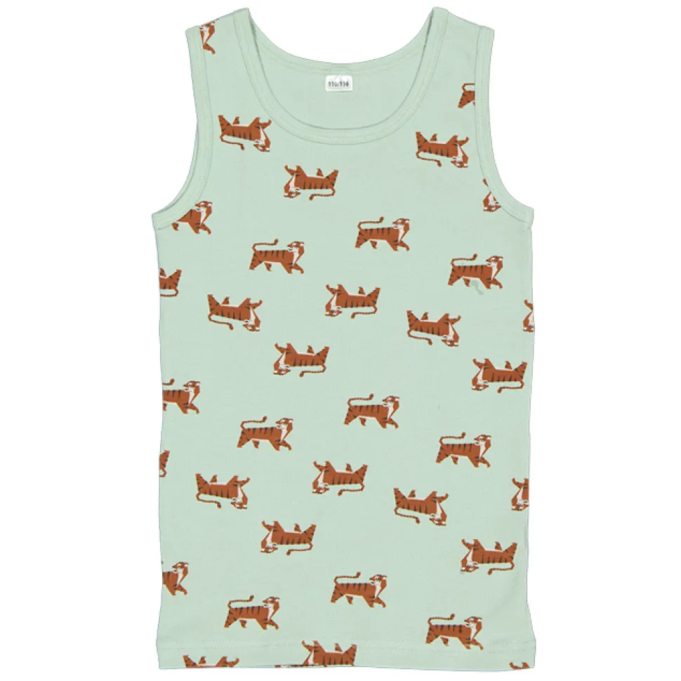 Dit groene tanktopje voor jongens is gemaakt van 95% katoen en 5% elastaan, wat zorgt voor een fijne pasvorm en draagcomfort. Het heeft een vrolijke print met honden, perfect voor een speelse look. Ideaal voor warmere dagen of als basislaag onder andere kleding. Het is eenvoudig te combineren.
