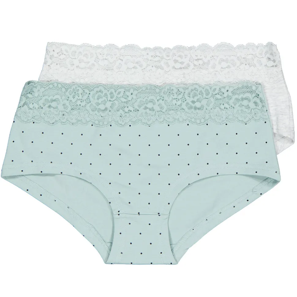 Deze set hipsterondergoed voor vrouwen bestaat uit twee comfortabele panties in groene tinten. De bovenkant heeft een mooie kantafwerking die zorgt voor een fijne fit. De stof is zacht en rekbaar, wat bijdraagt aan het draagcomfort. Ideaal om te combineren met diverse outfits.