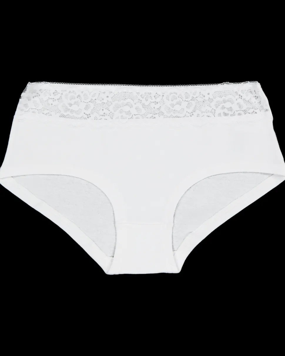 De samenstelling bestaat voor 95% uit katoen en voor 5% uit elastaan. En de kant voor 90% uit polyamide en voor 10% uit elastaan. Het katoen zorgt ervoor dat de stof lekker zacht is. Ook ademt katoen een stuk beter dan veel andere textielsoorten en heeft het een ventilerende werking. Polyamide is erg slijtvast en behoudt langer zijn kleur. Doordat de stof elastaan bevat, heeft het meer stretch. Dit zorgt voor een aansluitende pasvorm.