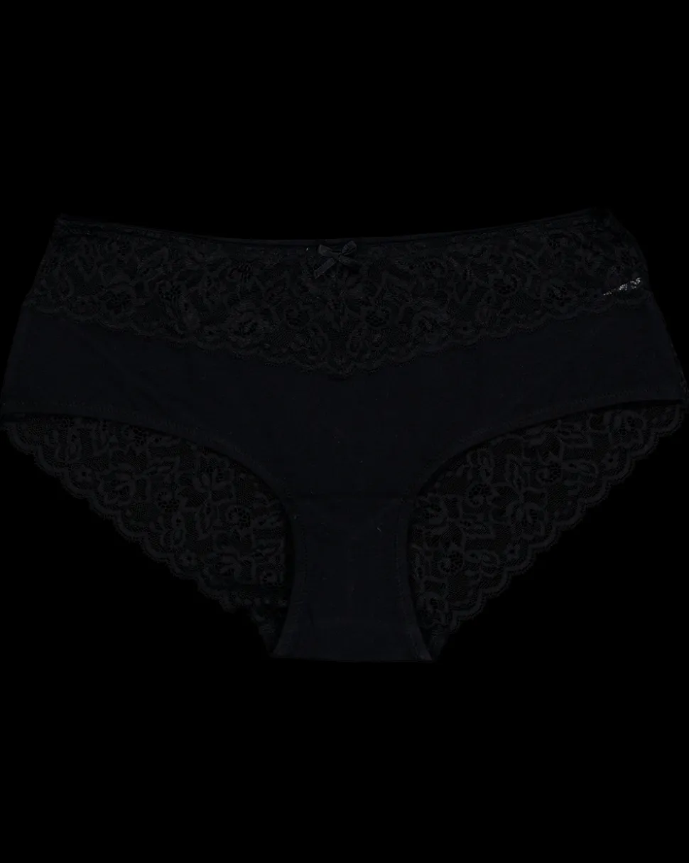 Deze hipster voor vrouwen heeft zwarte kant met een katoenen deel voor extra comfort. De combinatie van materialen zorgt voor een goede pasvorm en een fijne draagervaring. Je krijgt er twee stuks van die geschikt zijn voor dagelijks gebruik.