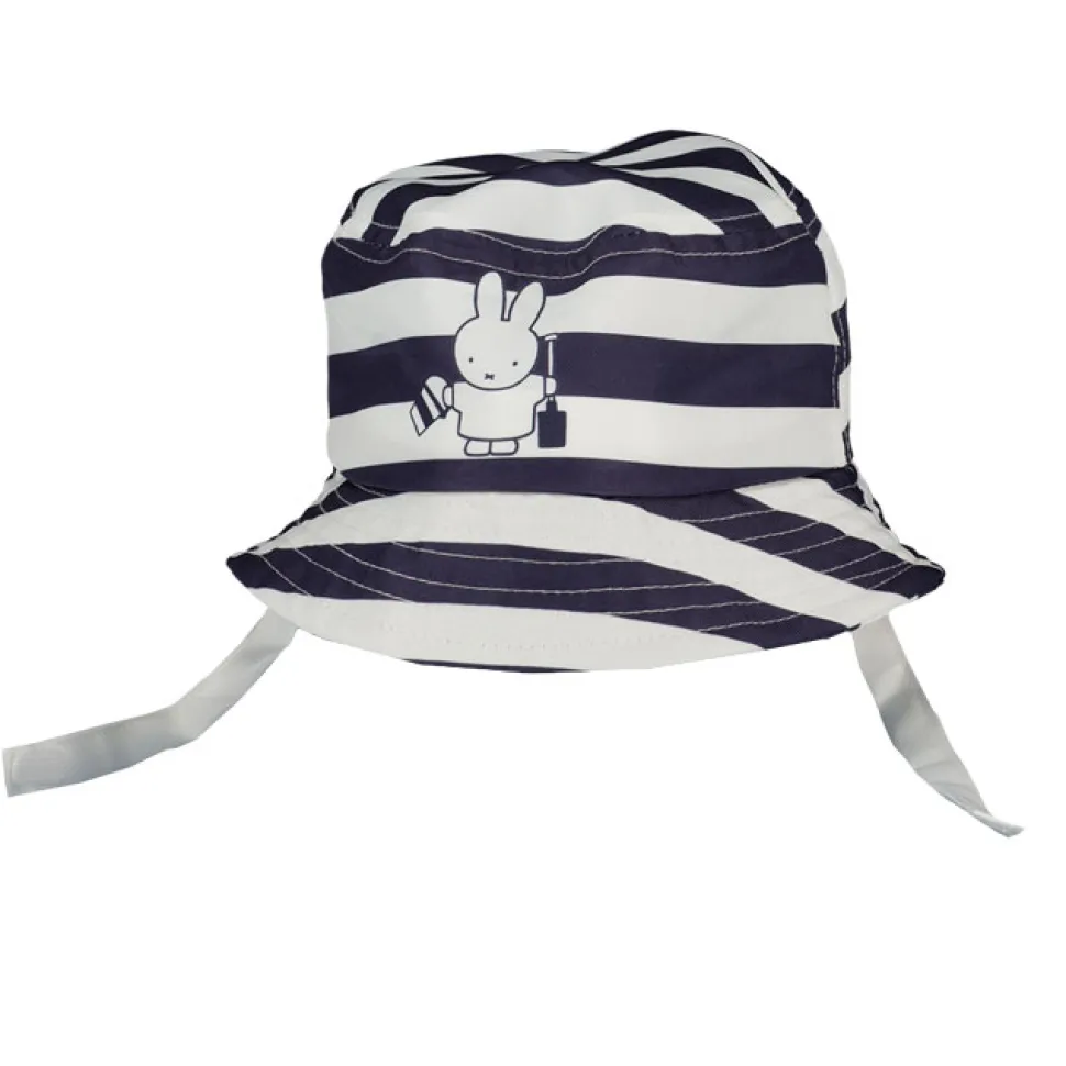 Deze blauwe hoed heeft een gestreept patroon en is geschikt voor baby's. De hoed biedt bescherming tegen de zon en is gemaakt van 100% polyester, wat zorgt voor een fijne pasvorm. Dankzij het unisex ontwerp is het een leuke keuze voor zowel jongens als meisjes. De praktische strikjes houden de hoed goed op zijn plaats.