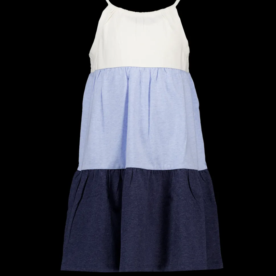 Deze jurk voor vrouwen heeft drie delen in verschillende kleuren. Het materiaal bestaat uit 60% katoen en 40% polyester. Dankzij de schouderbandjes is de jurk licht en luchtig, geschikt voor warm weer. De combinatie van stoffen geeft een comfortabele pasvorm.