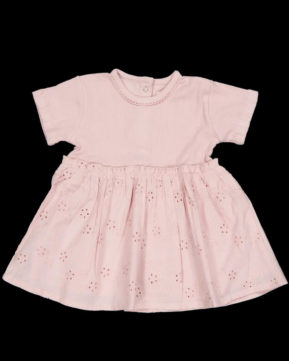 Deze roze jurk voor baby's is gemaakt van 100% katoen. De jurk heeft korte mouwen en een rok met een bloemmotief. Dankzij het katoen voelt de jurk zacht aan en is hij prettig om te dragen voor de kleintjes van zowel meisjes als jongens.