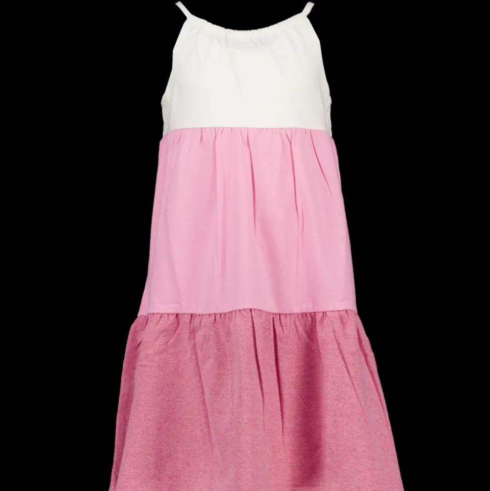 Deze jurk voor vrouwen heeft drie delen in verschillende tinten roze. De samenstelling is katoen 60% en polyester 40%. Door het materiaal voelt de jurk aangenaam aan en geschikt voor diverse momenten. De jurk heeft een losse pasvorm en is zonder mouwen.