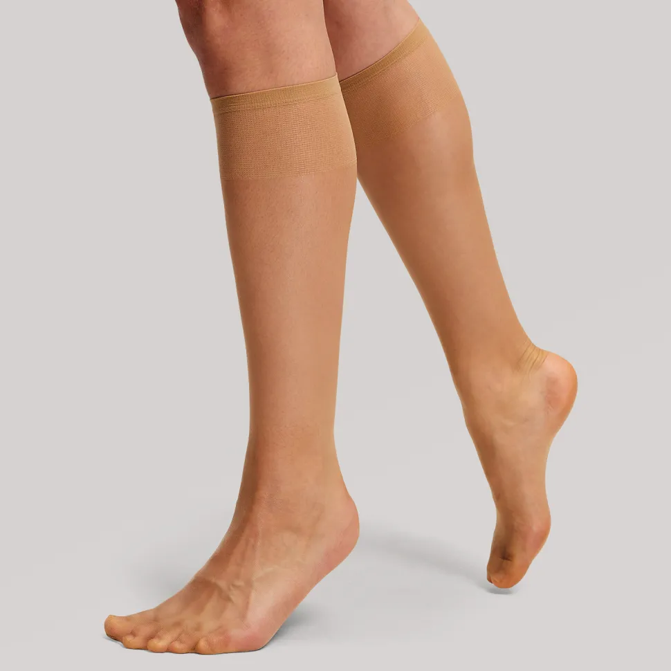 Transparante Lady Fit kniekousen van 15 denier met satijnglans. Voorzien van een comfortabele brede band. In de panty is lycra verwerkt voor een goede pasvorm. Doordat het teengedeelte versterkt is, is de kans op ladders minimaal. Gemaakt van 88% polyamide en 12% elastaan. Bevat stretch. Dit artikel heeft het kwaliteitskeurmerk 'Vertrouwen in textiel' (Ökotex).