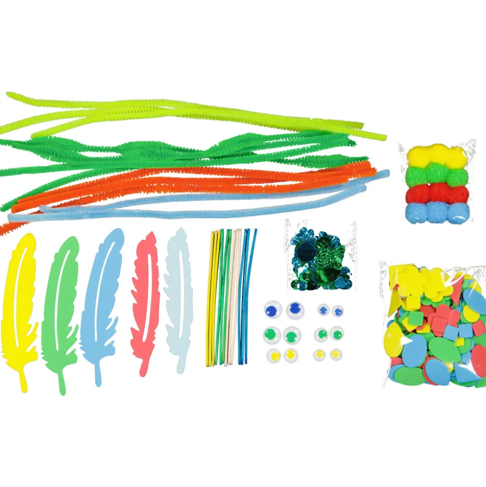 Ontdek creativiteit met onze knutselset. De set bestaat uit ijslollysticks, wiebeloogjes, foam vormen, pompons, glittervormpjes en pijpenragers. Allemaal in vier vrolijke kleuren. Deze set is perfect voor het ontwikkelen van handvaardigheid en verbeelding, ideaal voor uren knutselplezier.