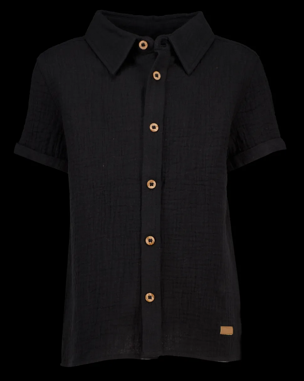 Dit zwarte overhemd voor mannen is gemaakt van 100% katoen. Het heeft korte mouwen en een knoopsluiting aan de voorkant. Door het katoenen materiaal draagt het comfortabel en is het geschikt voor verschillende momenten.