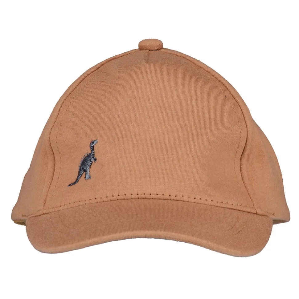 Deze cap in een warme, bruine kleur is gemaakt van 100% katoen. Hij is speciaal ontworpen voor baby's en is unisex, zodat hij door zowel jongens als meisjes gedragen kan worden. Aan de voorkant staat een schattig dinosaurusje geborduurd. De cap biedt bescherming tegen de zon en is fijn om te dragen.