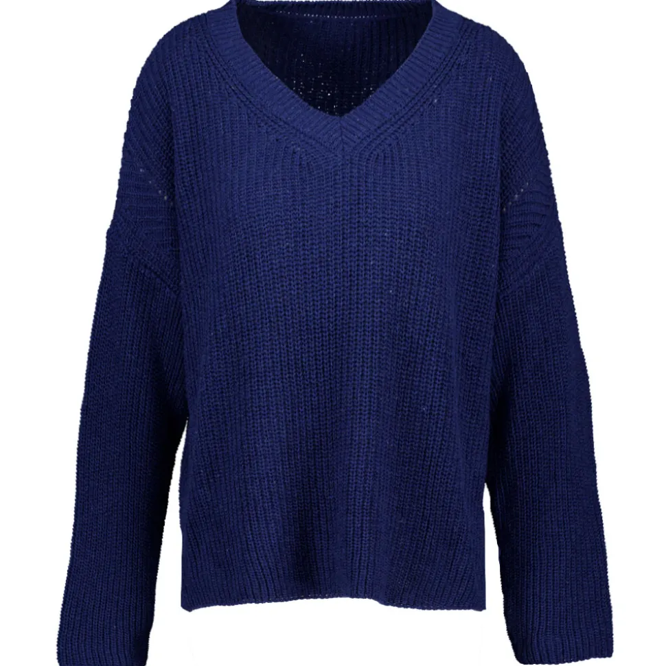 Deze blauwe pullover voor volwassenen heeft een v-hals en lange mouwen. Gemaakt van een comfortabele mix van onder andere acryl en katoen, voelt het zacht aan op de huid. De losse fit zorgt voor bewegingsvrijheid en draagt prettig. Ideaal te combineren met verschillende outfits.