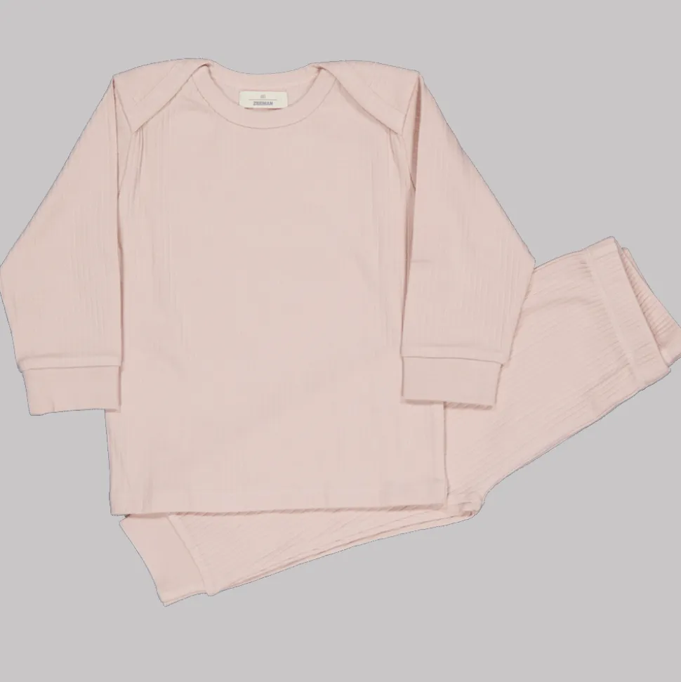 Deze unisex pyjama voor baby's is gemaakt van 95% katoen en 5% elastaan. De zachte stof geeft veel comfort en ruimte om te bewegen. De roze kleur maakt het een fijne keuze. Met lange mouwen en een ontspannen pasvorm is deze pyjama geschikt voor een goede nachtrust.