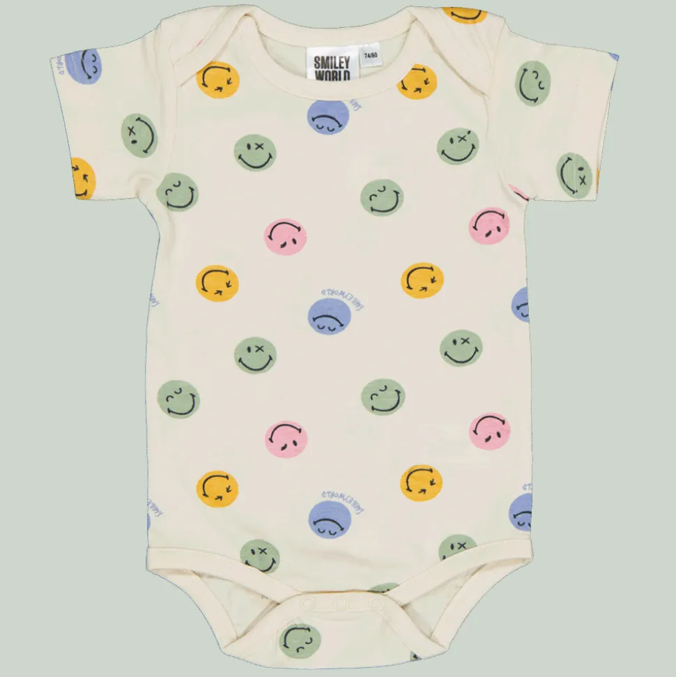 Deze romper voor baby's in de kleur wit is gemaakt van 100% katoen. Het heeft een speels all-over print met vrolijke gezichten. De unisex pasvorm en het praktische ontwerp maken het gemakkelijk aan en uit te trekken. Ideaal voor je kleintje om comfortabel te dragen.