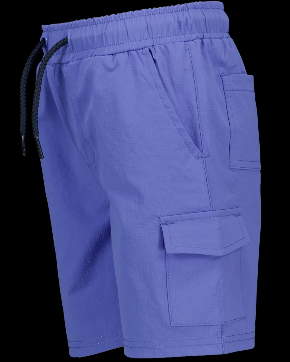 Deze blauwe short voor jongens heeft een elastische tailleband met trekkoord voor een verstelbare pasvorm. De stof bestaat uit polyamide en elasthaan wat zorgt voor een licht rekbaar en comfortabel draagcomfort. Aan de zijkanten zitten praktische zakken voor kleine spullen.