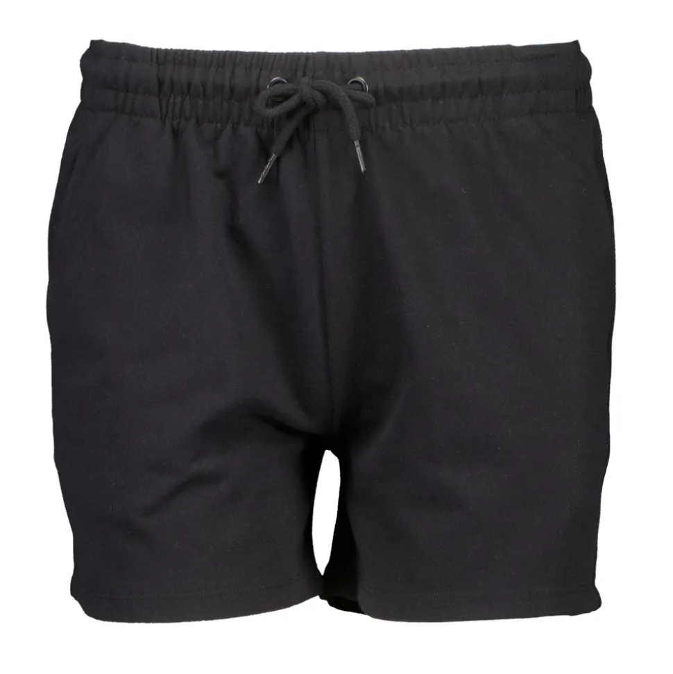 Deze zwarte short voor vrouwen is gemaakt van katoen en polyester. De elastische tailleband met koord zorgt voor een goede pasvorm. De short is geschikt voor warme dagen en biedt comfort door de lichte stof. Een praktische keuze voor diverse activiteiten in de zomer.