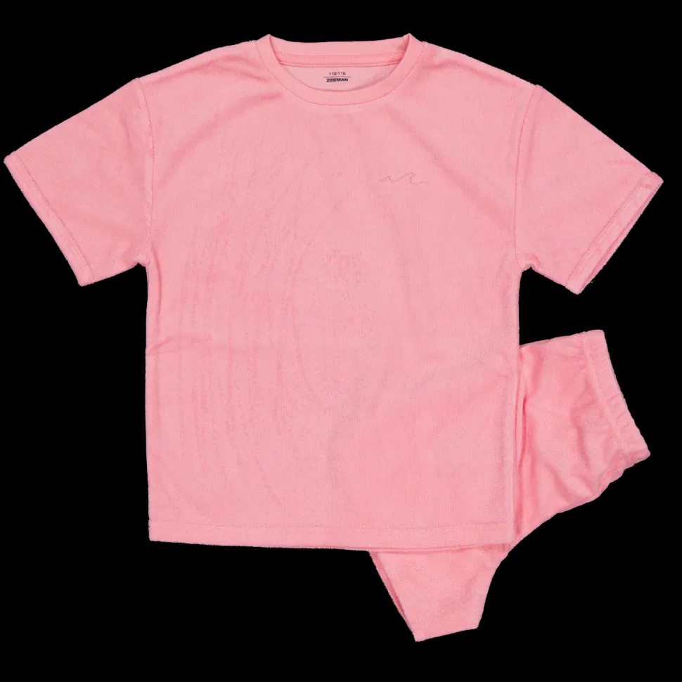 Deze korte pyjama voor meisjes in een zachte roze kleur is gemaakt van 80% katoen en 20% polyester. Het teddy en tricot materiaal zorgt voor een comfortabele pasvorm. De pyjama bestaat uit een t-shirt met korte mouwen en een broekje. Ideaal voor een goede nachtrust.