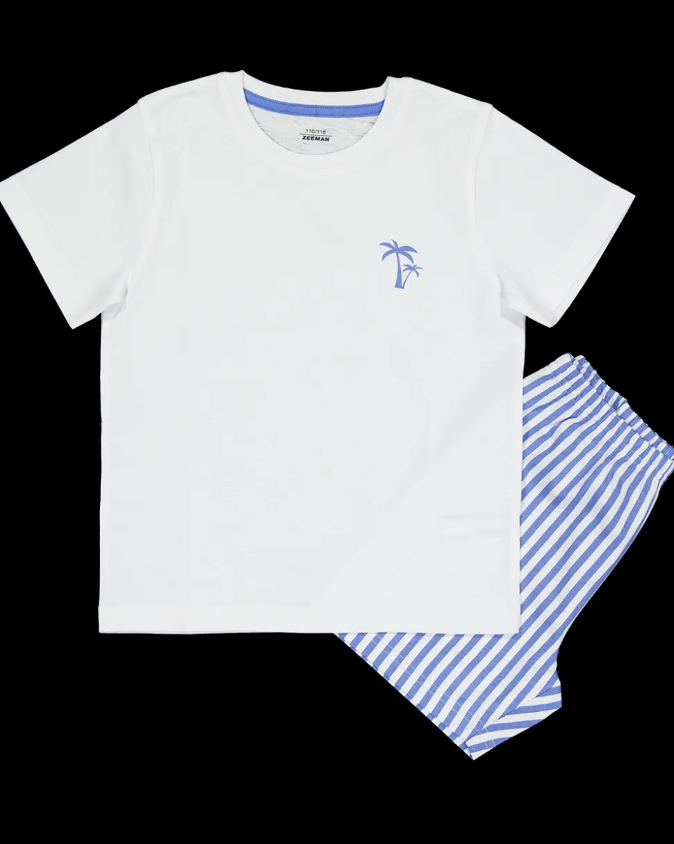 Deze witte shortama voor jongens heeft een shirt met korte mouwen en is gemaakt van single jersey katoen. Het materiaal voelt zacht aan en zorgt voor draagcomfort tijdens het slapen. De eenvoudige stijl maakt dat je kind er rustig en comfortabel in kan slapen.