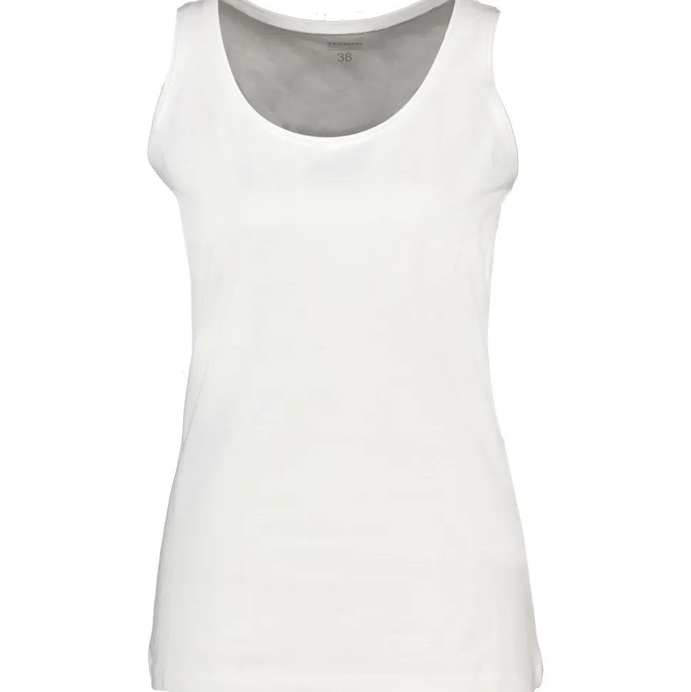 Deze mouwloze singlet is in de kleur wit en gemaakt van 95% katoen met 5% elasthaan. Het materiaal zorgt voor een comfortabele pasvorm. De singlet is geschikt voor vrouwen en heeft een eenvoudige, praktische uitstraling.