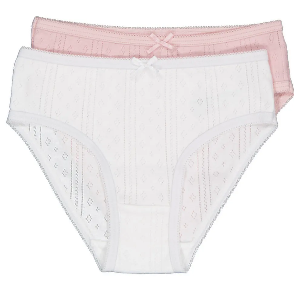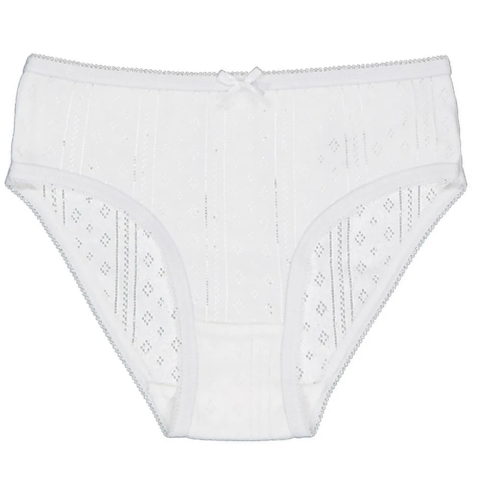 Deze witte slip voor meisjes is gemaakt van 100% katoen. Het zit comfortabel en ademt goed. De slip heeft een eenvoudig patroon en een klein strikje voor een subtiel detail. Je krijgt twee slips in deze set, handig om af te wisselen.