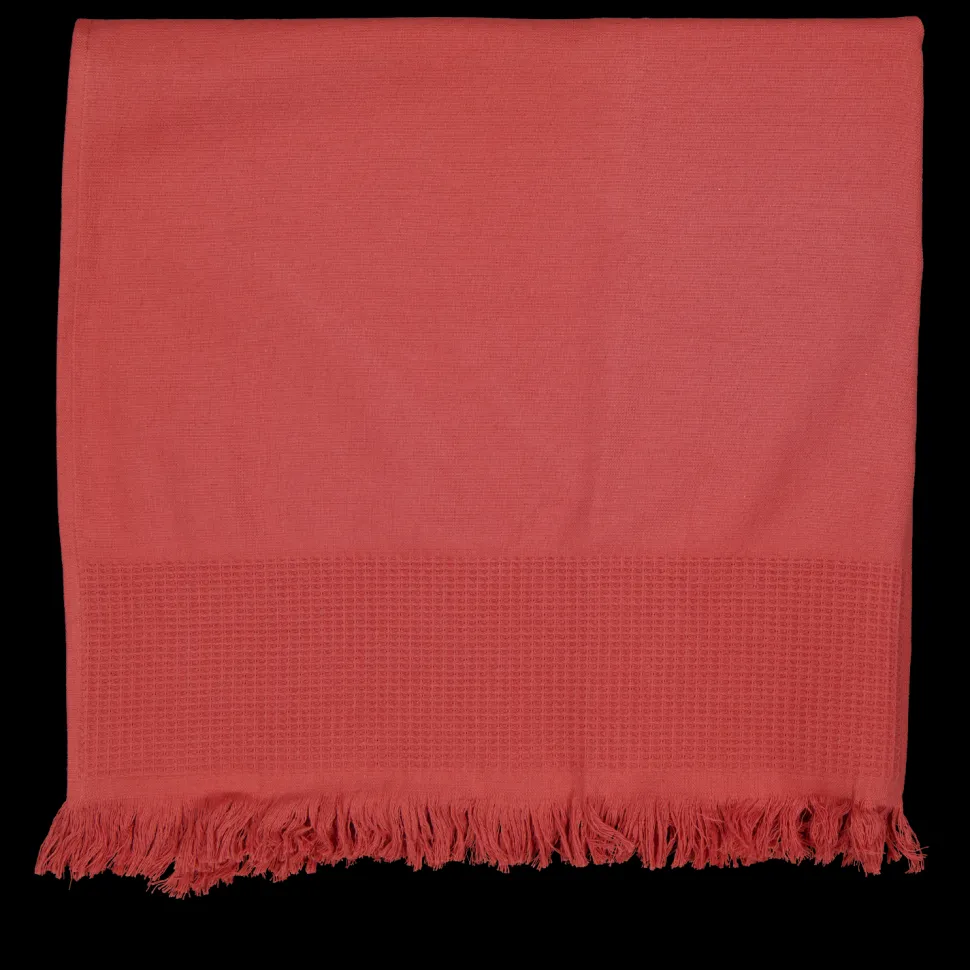 Deze oranje strandhanddoek is gemaakt van 100% katoen en voelt zacht aan op de huid. Met zijn handige afmetingen is hij perfect om op te liggen of jezelf af te drogen na een frisse duik. De fringe aan de onderkant geeft een speelse touch aan deze veelzijdige handdoek.