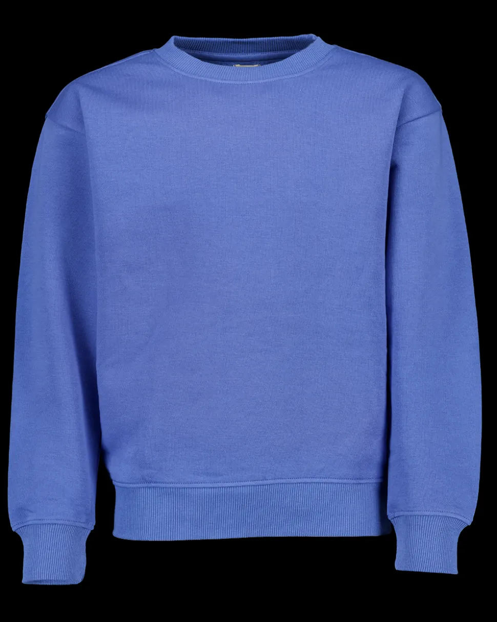 Deze blauwe sweater is geschikt voor kinderen en heeft een uniseks model. De samenstelling bestaat uit 88% katoen en 12% polyester, wat zorgt voor een zachte en stevige stof. De sweater heeft een eenvoudige uitstraling en sluit goed aan dankzij de boord aan mouwen en onderkant.