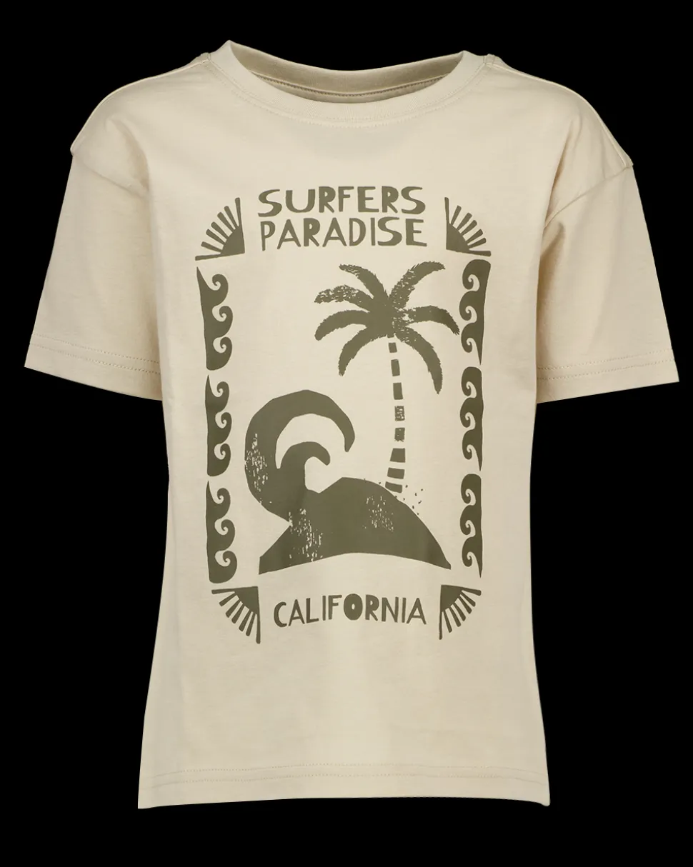 Dit T-shirt voor jongens is gemaakt van 100% katoen, wat zorgt voor comfort en ademend vermogen. Het heeft een ronde hals en korte mouwen. Het witte shirt heeft een vrolijke print met een palmboom en surf thema. Dit maakt het een leuk item voor in de zomer. Het is eenvoudig te combineren met verschillende broeken.