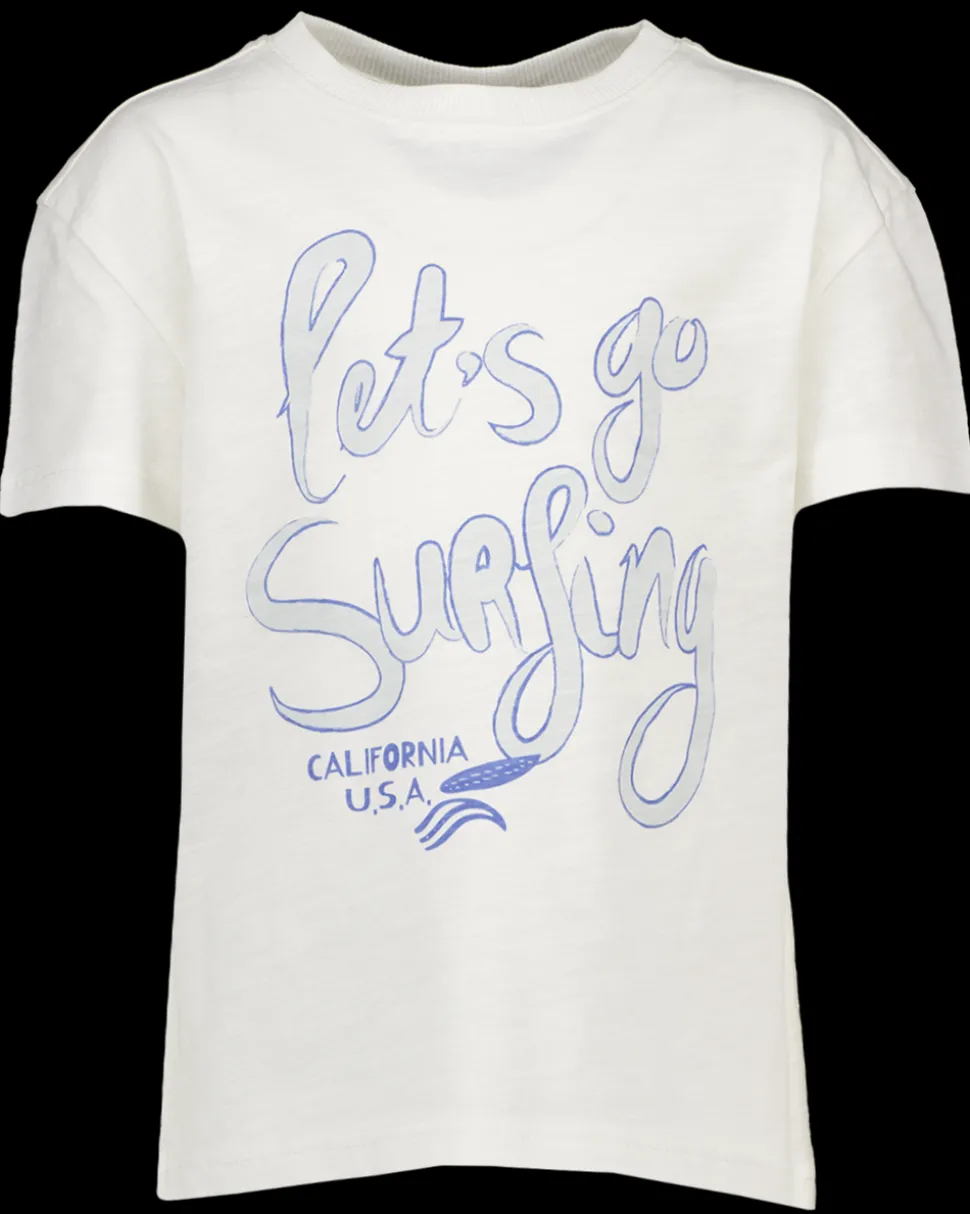 Dit witte T-shirt voor jongens is gemaakt van 100% katoen. Het heeft een ronde hals en korte mouwen. De blauwe tekst op de voorkant geeft het een speelse uitstraling. Het shirt is geschikt voor dagelijks gebruik en voelt comfortabel aan.