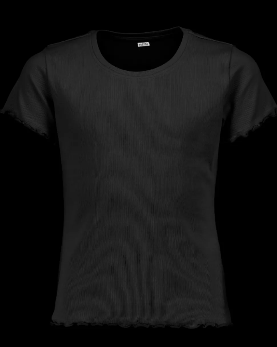 Deze zwarte T-shirt voor meisjes heeft korte mouwen en een ronde hals. Het materiaal bestaat voor 97% uit katoen en 3% elastaan, waardoor de T-shirt iets rekbaar is. Hierdoor draagt deze prettig en sluit deze goed aan.