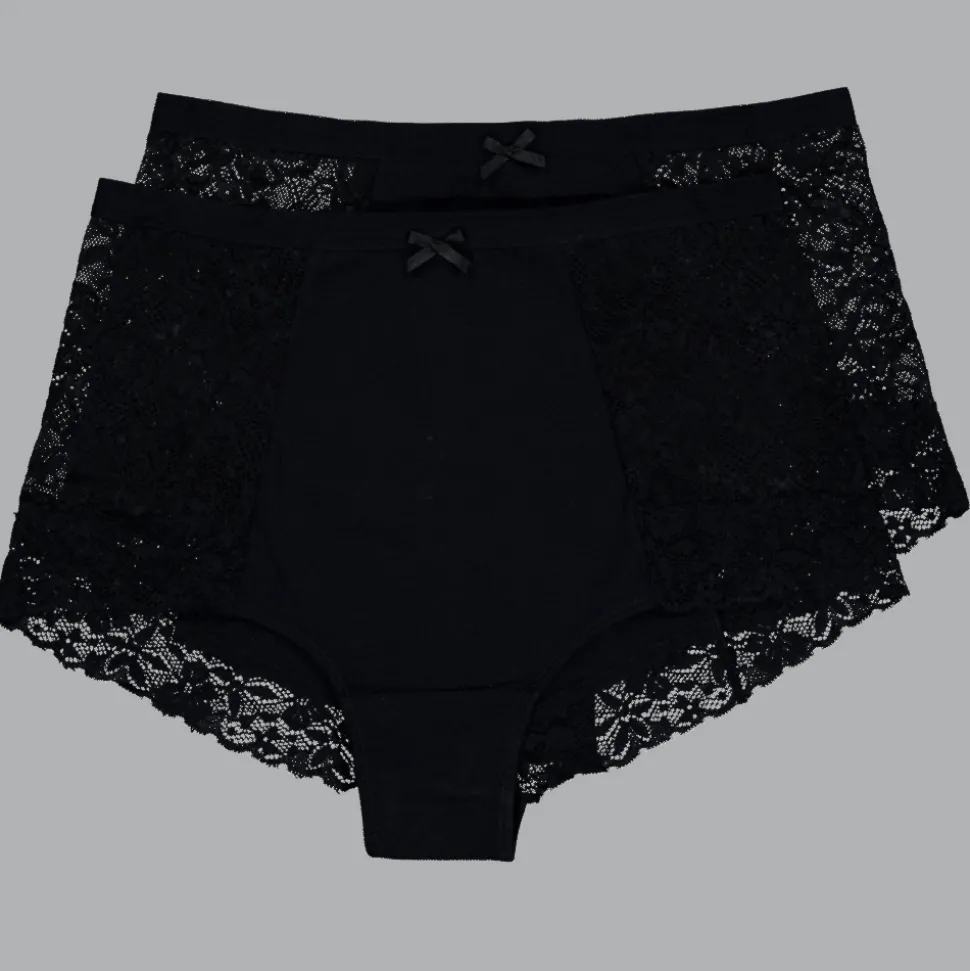 Deze tailleslip in de kleur zwart heeft kanten delen aan de zijkanten en achterkant. De slip is gemaakt van katoen met een beetje elastaan voor meer zitcomfort. Je krijgt een set van twee slips die aansluiten zonder af te tekenen.