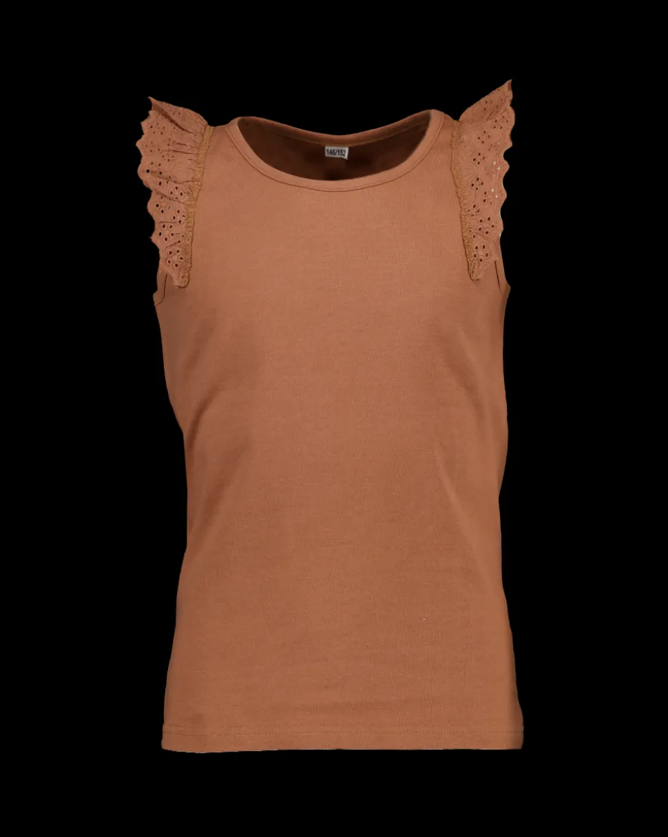 Dit bruin topje is gemaakt van 100% katoen en biedt comfort en ademend vermogen. De schouderdetails voegen een speelse touch toe zonder te veel op te vallen. Met een ronde hals is het een fijne aanvulling op je kleding. Eén verpakking bevat dit item voor eenvoudig combineren.