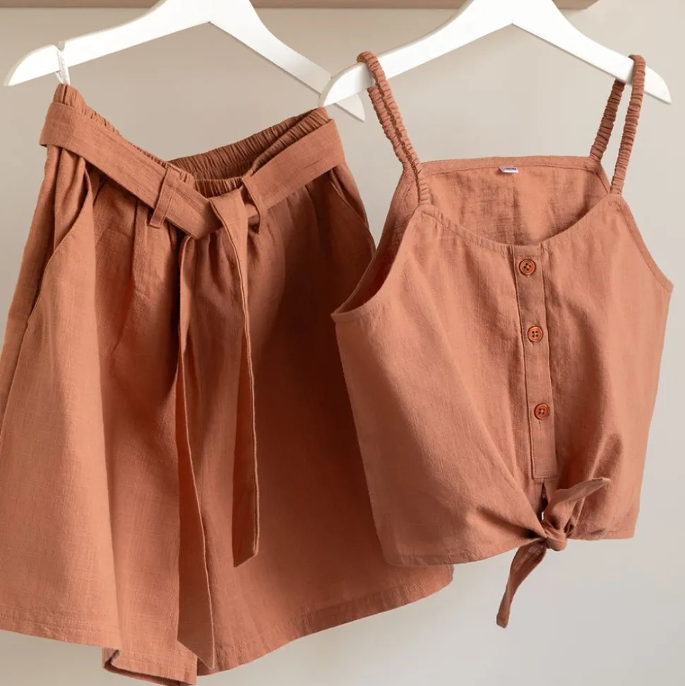 De stof bestaat voor 100% uit katoen. Dankzij het katoen laat de stof lucht door, kan het veel vocht absorberen en droogt het snel. Dit maakt het ook een fijne stof voor de zomerdagen. Door de structuur van katoen is de stof ook sterk.