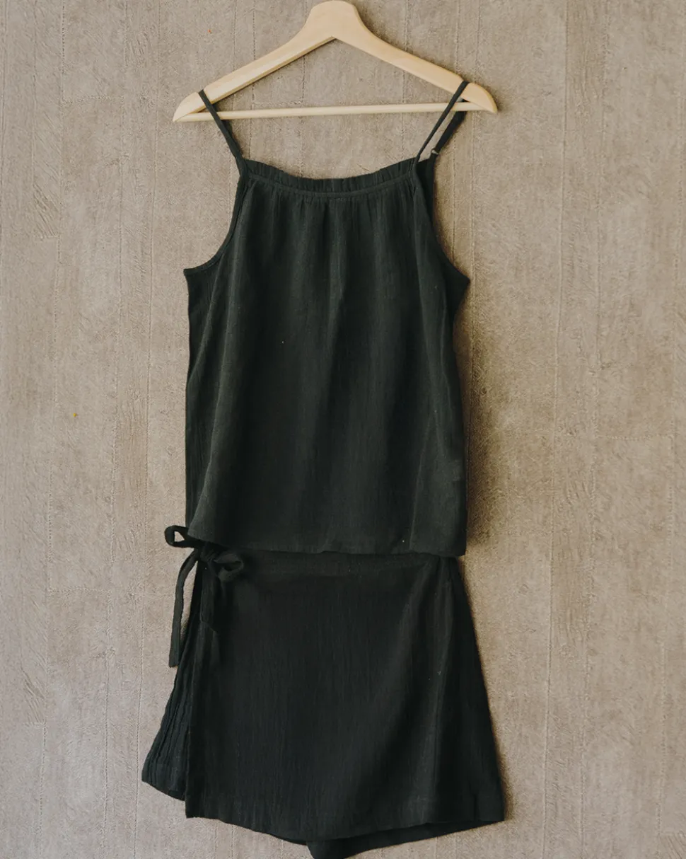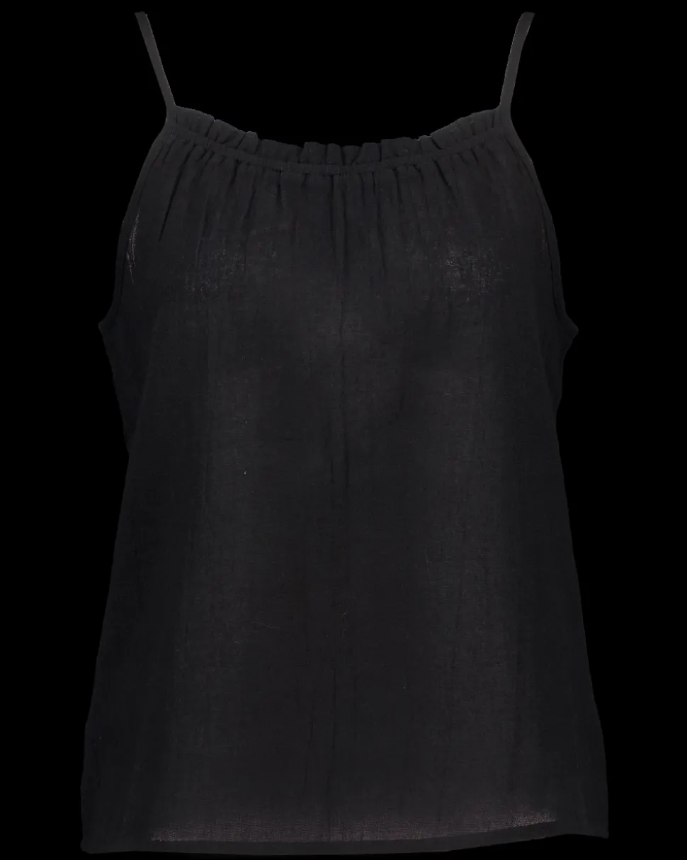 Deze zwarte top voor vrouwen is mouwloos en gemaakt van 100% katoen. Het ademende materiaal zorgt voor een comfortabel gevoel op de huid. De top heeft een eenvoudige pasvorm en is geschikt voor verschillende gelegenheden tijdens warmer weer.