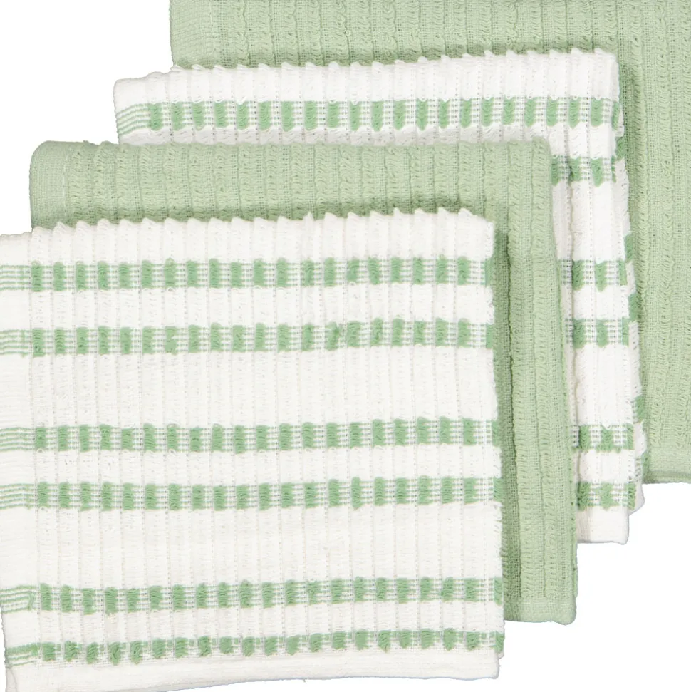 Deze vaatdoeken in de kleur lichtgroen hebben een formaat van 35 x 35 cm en zijn gemaakt van een stof die dik en zacht is. Je maakt er gemakkelijk je fornuis, je gootsteen of aanrecht mee schoon. De set bestaat uit 4 aanrechtdoeken, zodat je er altijd een hebt wanneer de andere in de was zitten.
