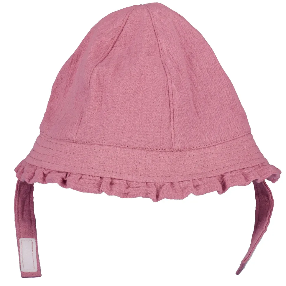 Deze zonnenhoed is speciaal voor baby’s en is uniseks. De hoed is gemaakt van 100% katoen en biedt comfort onder de zon. De roze kleur is vrolijk en de randen zijn versierd met een rimpel, wat een speelse uitstraling geeft. De hoed is gemakkelijk te bevestigen met de handige sluiting.