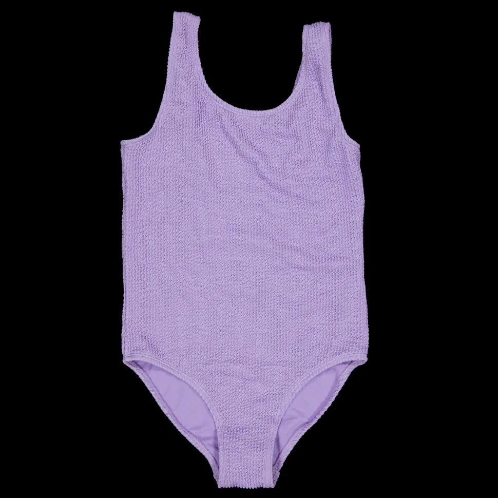 Deze paarse zwempak is speciaal voor tienermeisjes. Het is gemaakt van een comfortabele breisel van 95% polyester en 5% elastaan. Dit materiaal zorgt voor een fijne pasvorm en maakt het pak geschikt voor verschillende activiteiten rond het water. Het heeft brede schouderbanden voor extra steun.