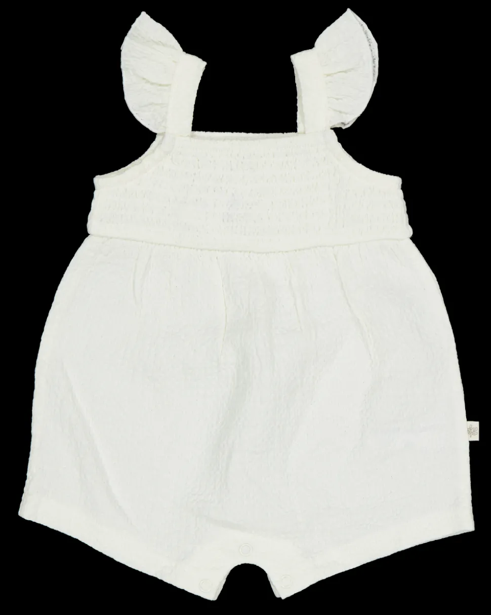 Deze witte boxpak voor baby’s is gemaakt van 100% katoen. Het pakje heeft korte pijpen en knoopjes aan de onderkant voor het verschonen. Door het neutrale ontwerp is deze geschikt voor jongens en meisjes. Het draagt comfortabel door het zachte materiaal.