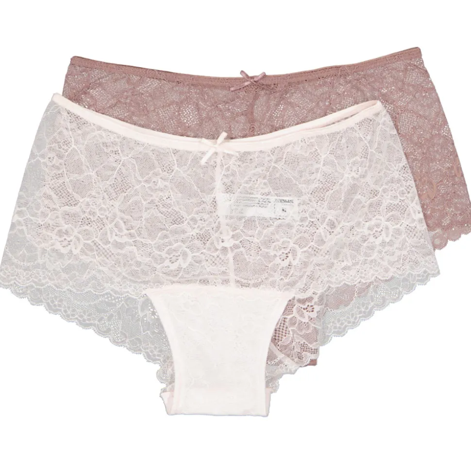 Een Brazilian slip lijkt op een gewone slip, maar heeft minder dekking aan de achterkant doordat ze hoger zijn uitgesneden. Deze set bestaat uit 2 dames brazilians. De smalle, elastische tailleband zorgt er niet alleen voor dat ze goed aansluiten, maar ook dat ze de hele dag lekker zitten. Het kant zorgt voor een elegante uitstraling. Zo zitten ze fijn en zien ze er mooi uit.