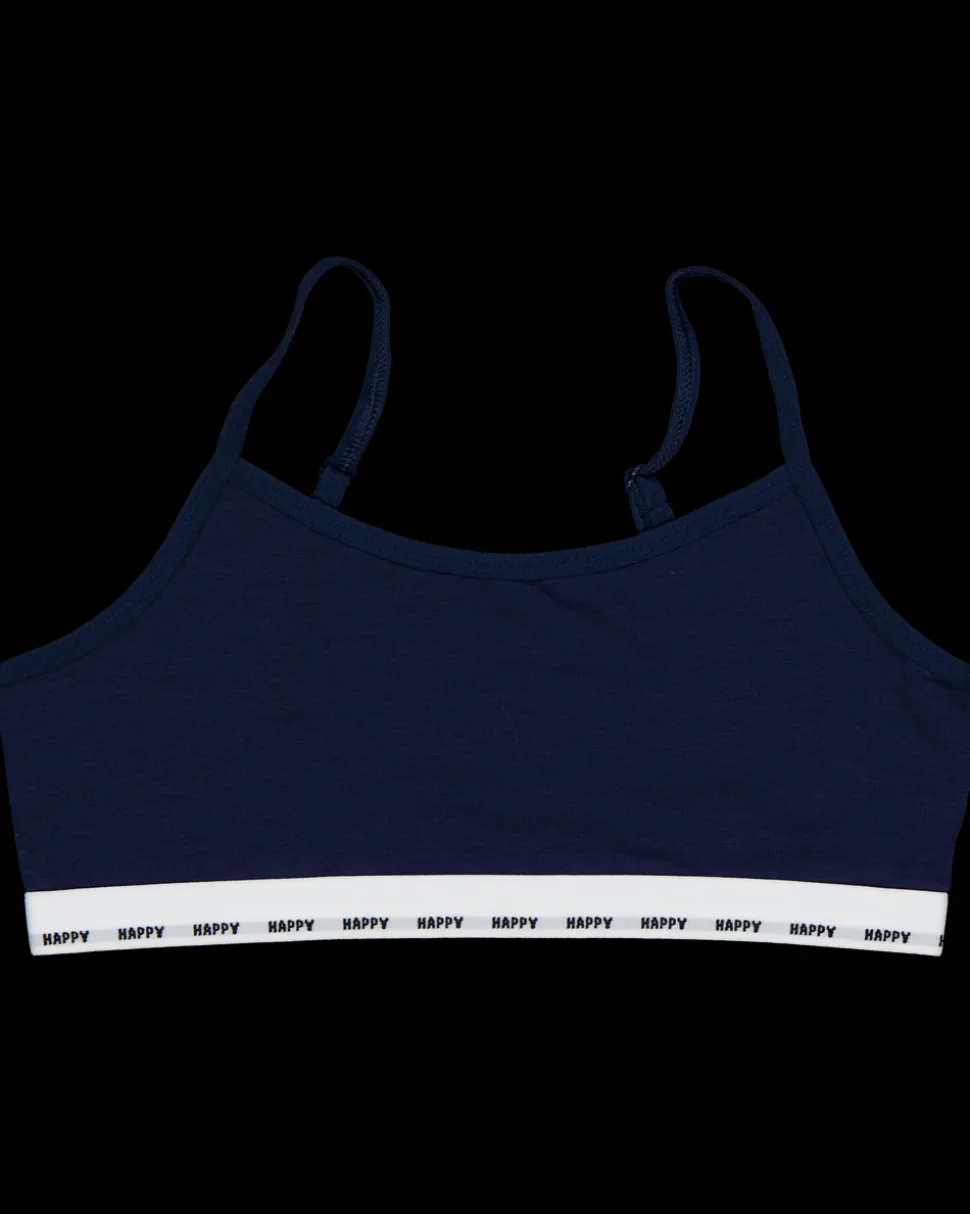 Deze croptop in de kleur blauw heeft spagettibandjes en een elastische boord met tekst. De samenstelling van katoen, polyester en elastaan zorgt voor een soepele pasvorm. De top is geschikt voor tieners en kan door jongens en meisjes gedragen worden.