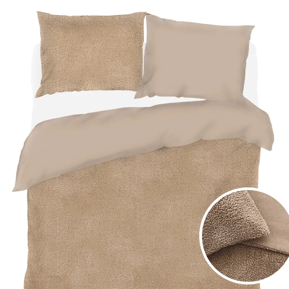 Dit bruine dekbedovertrek is gemaakt van teddystof van 100% polyester. De zachte structuur geeft een warm gevoel en zorgt voor extra comfort tijdens het slapen. Met dit overtrek houd je je bed gezellig en knus.