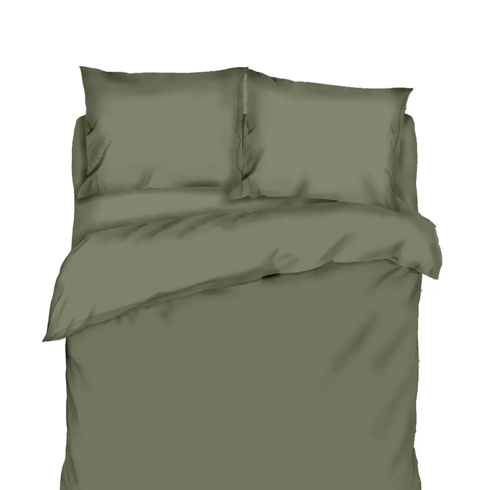 Dit groene dekbedovertrek is gemaakt van 100% katoen en heeft een afmeting van 240 bij 220 centimeter. Het materiaal voelt prettig aan en zorgt voor een comfortabel slaapklimaat. Dit overtrek is geschikt voor een eenpersoonsbed.