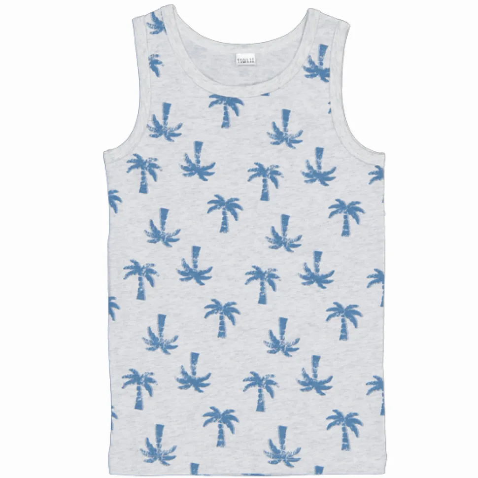 Dit grijze hemd voor jongens heeft een dessin met palmbomen. Het is gemaakt van katoen met een klein beetje stretch voor meer draagcomfort. Het hemd is geschikt om te dragen onder andere kleding of op warme dagen.