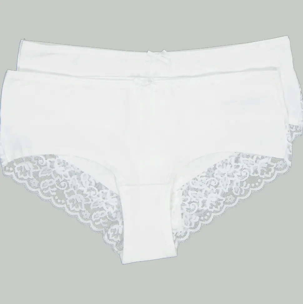 Deze hipsters in de kleur wit zijn gemaakt van katoen met 5% elastaan, waardoor ze iets meerekken. Ze zijn geschikt voor vrouwen en worden per twee stuks geleverd. Door de katoensamenstelling voelen ze comfortabel aan op de huid.