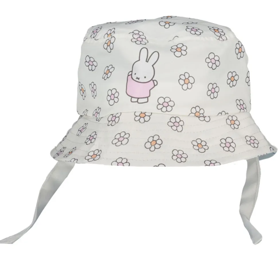 Deze witte hoed voor baby's heeft een all-over print met vrolijke bloemetjes en een schattig konijntje. De hoed is gemaakt van 100% polyester en past uniseks. Met de bandjes blijft de hoed goed zitten, ideaal voor zonnige dagen buiten. Deze hoed biedt comfort en bescherming voor jouw kleintje.