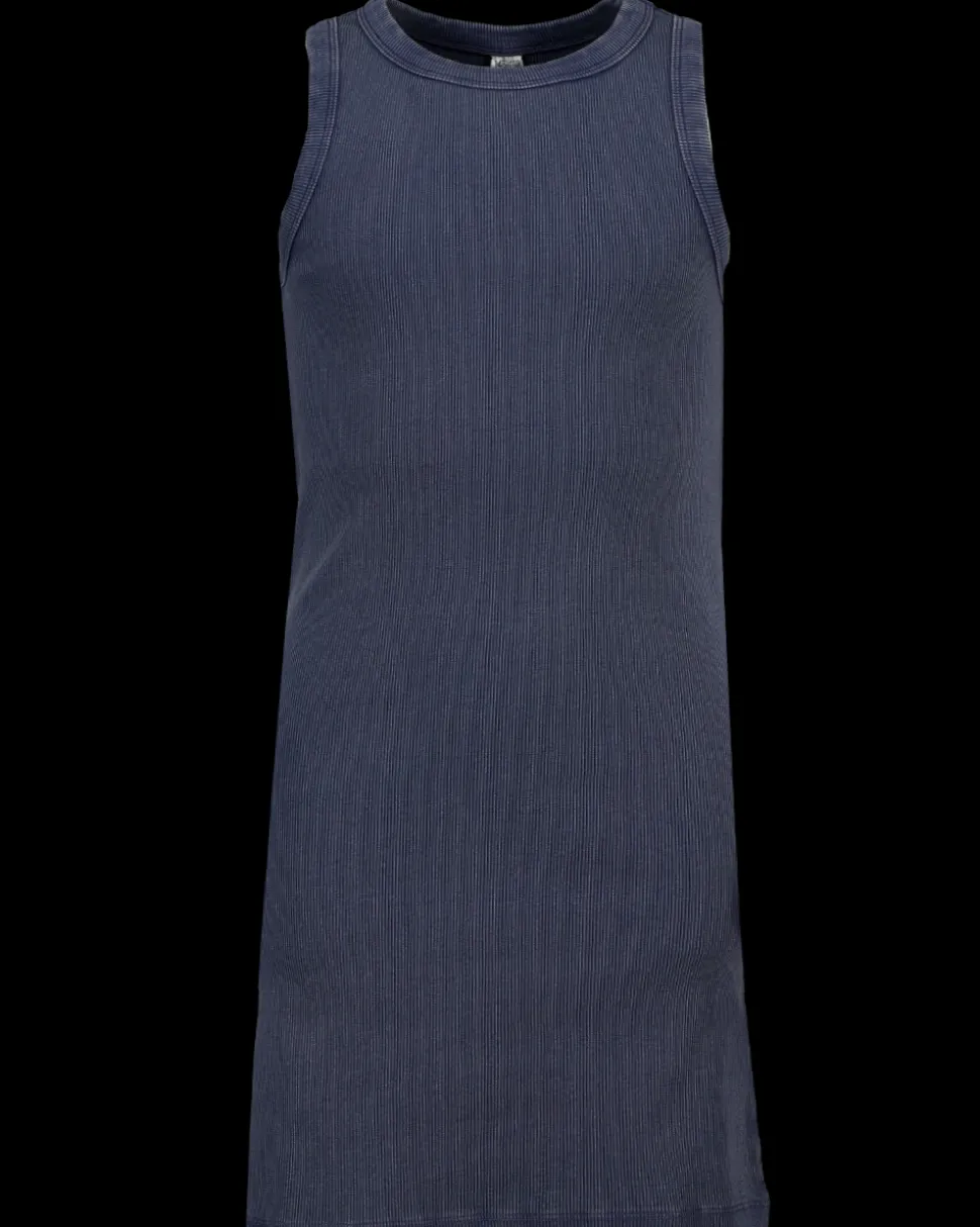 Deze jurk voor meisjes is gemaakt van katoen met een klein aandeel elastaan voor extra stretch. De jurk is in de kleur blauw en heeft een eenvoudige, mouwloze uitvoering. Door de rekbare stof draagt deze jurk prettig en zit comfortabel.