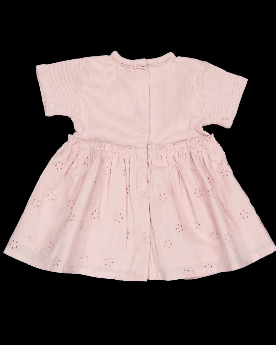 Deze roze jurk voor baby's is gemaakt van 100% katoen. De jurk heeft korte mouwen en een rok met een bloemmotief. Dankzij het katoen voelt de jurk zacht aan en is hij prettig om te dragen voor de kleintjes van zowel meisjes als jongens.